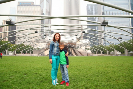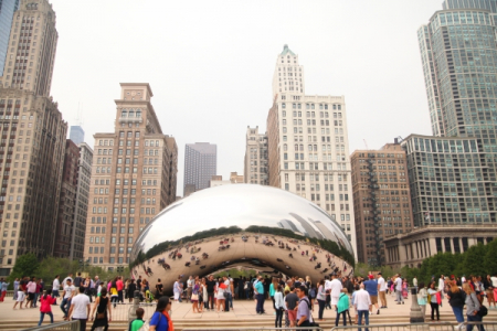 Вид с пешеходного моста BP Pedestrian Bridge, Миллениум парк в Чикаго